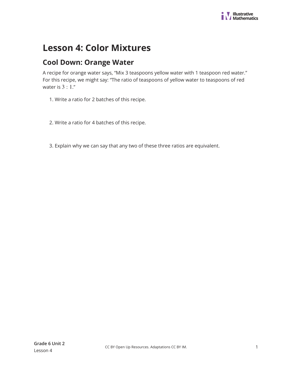 Write a ratio for two batches of this recipe.