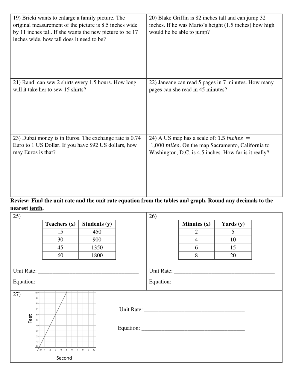 Using your unit rate from above, write the unit rate equation.Hint: y=kx, where k is the unit rate.