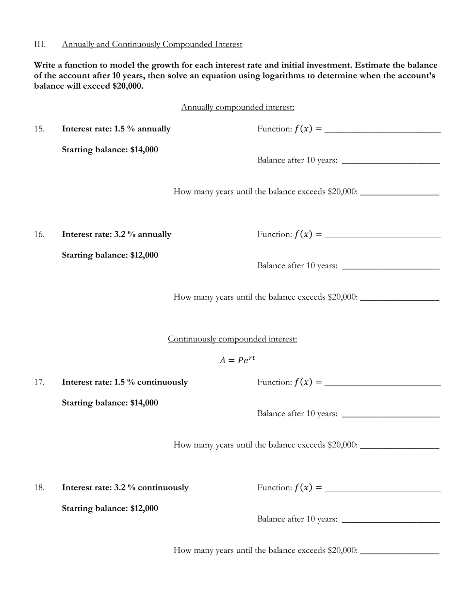 Write a function to model a $14000 investment at 1.5% interest, compounded continuously. (Use x as your variable.)