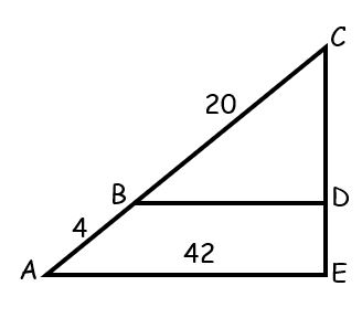 In the diagram below, given that \frac{CA}{CB}=\frac{AE}{BD}, find BD.
