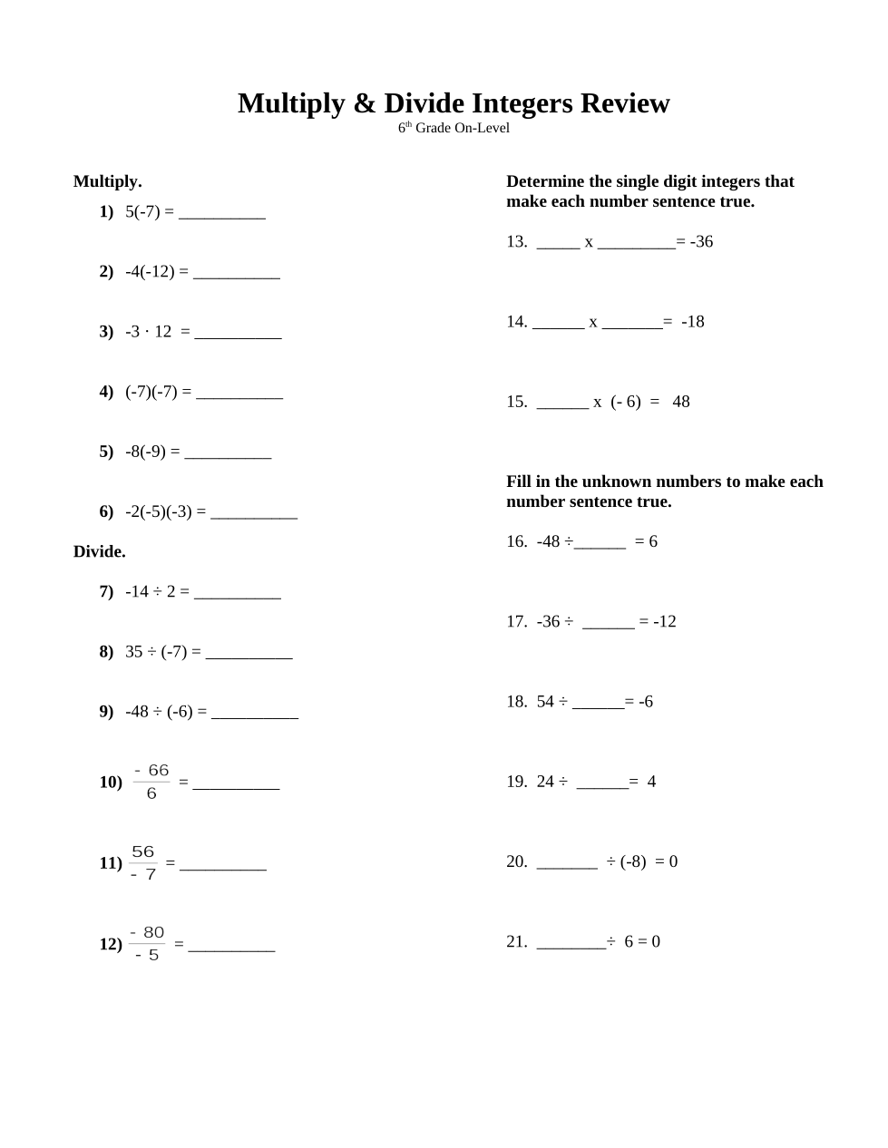Multiplying and dividing integers review OL cloned 12/2/2021 cloned 12/2/2021