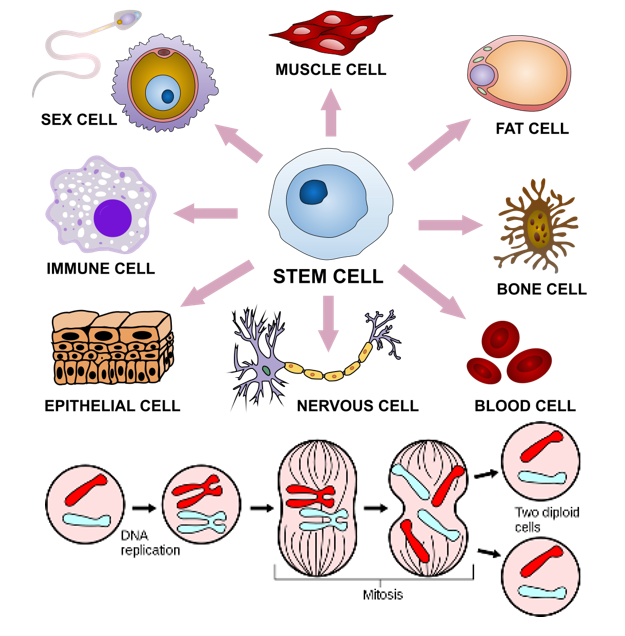 The rubric below shows point breakdown. Please be sure to include both of the roles - the role of mitosis and the role of cellular differentiation- in producing and maintaining complex organisms. Use the model to support your answer.