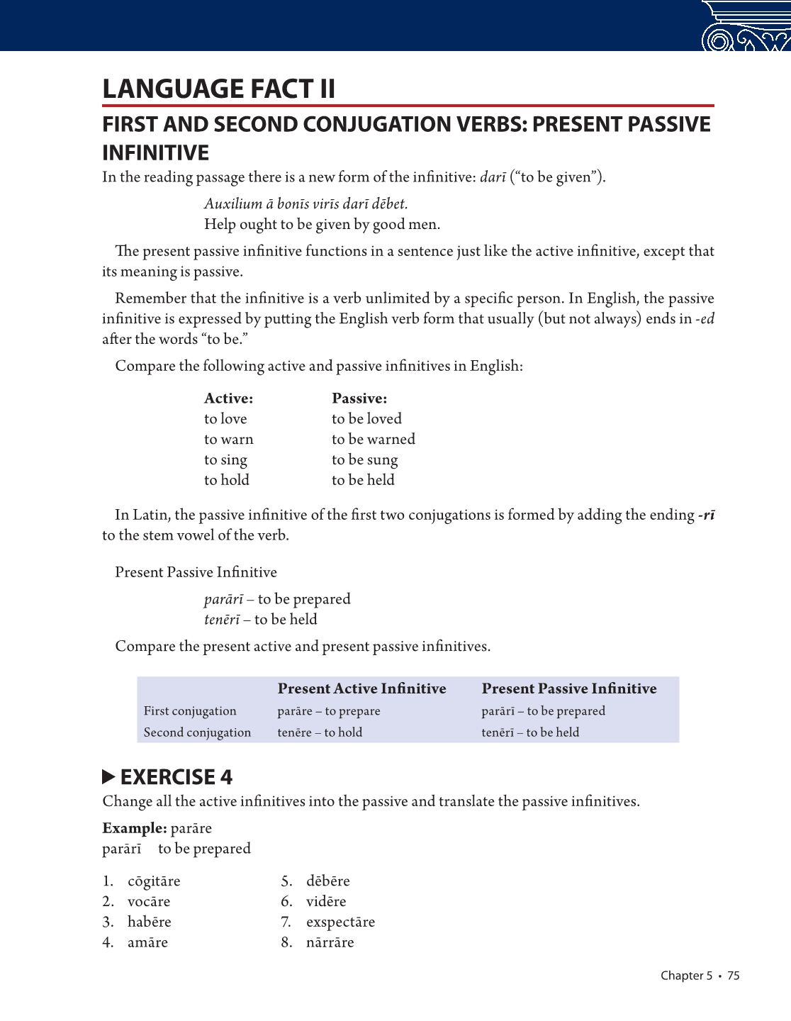 LNM1 Ch 5 Ex 4: Present Passive Infinitive