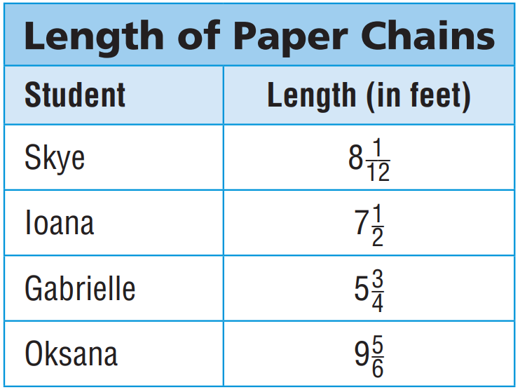 If Ioana attaches her chain to the end of Gabrielle’s chain, what will be the length of the combined chain?