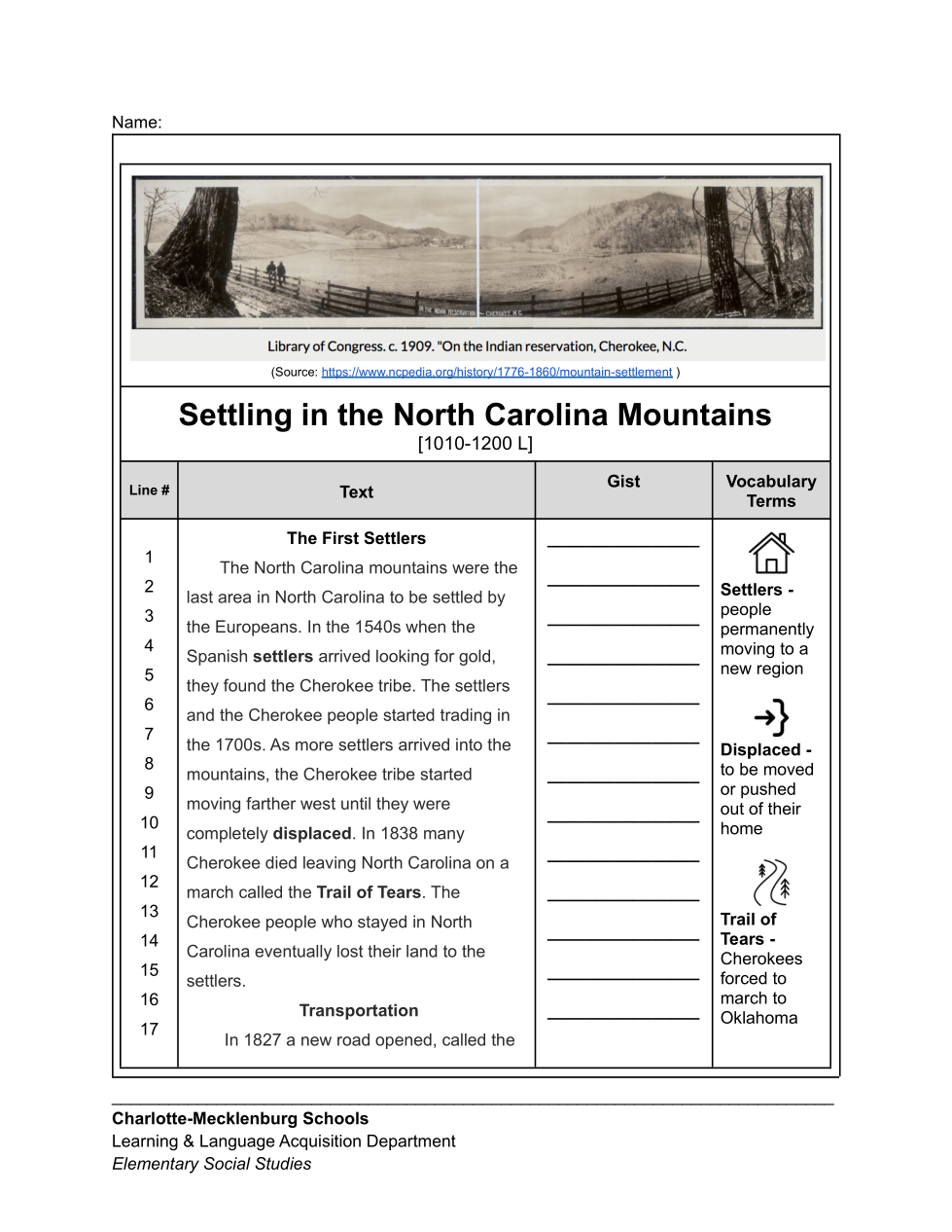 Read the article "Settling in the North Carolina Mountains" then answer the questions.