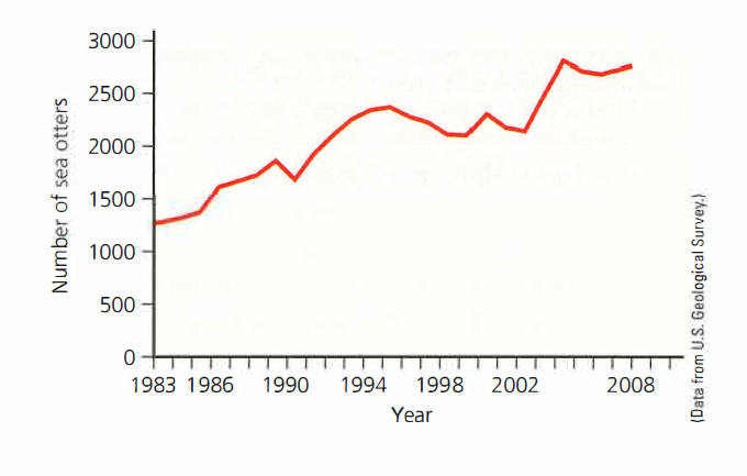 Review the graph below of an otter population off the coast of California.