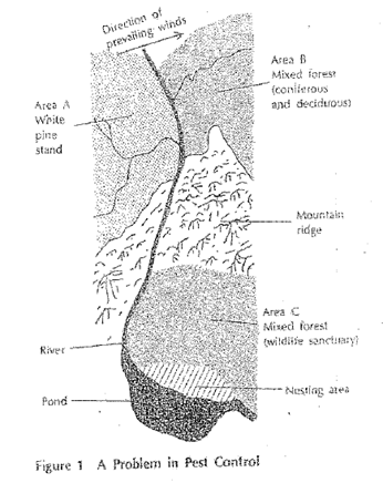 He has been assured that natural barriers and the wind direction will keep the pesticide out of the wildlife area. The three areas shown in the diagram (Figure 1) were carefully studied over a five-year period by researchers from a nearby university.