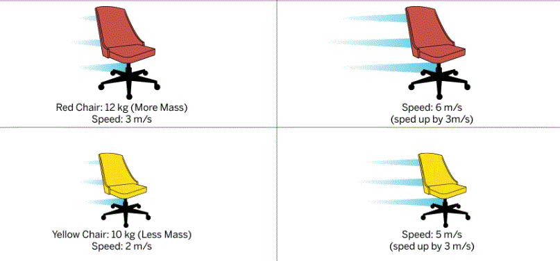 The Yellow chair has a mass of __________ which is __________than the Red Chair.