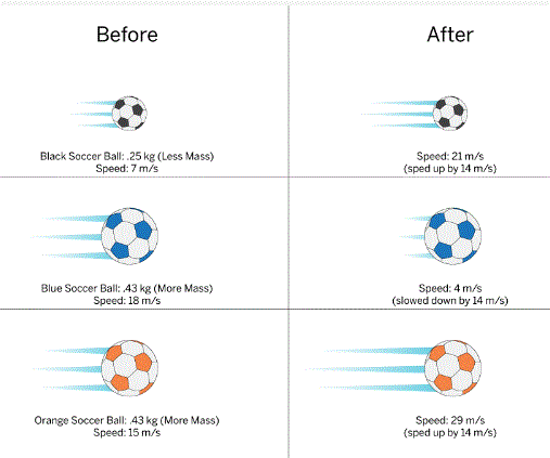 A _______ force can cause a greater change in velocity when the masses are the same
