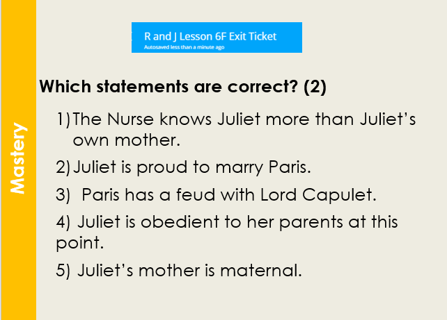 R and J Lesson 6F Exit Ticket