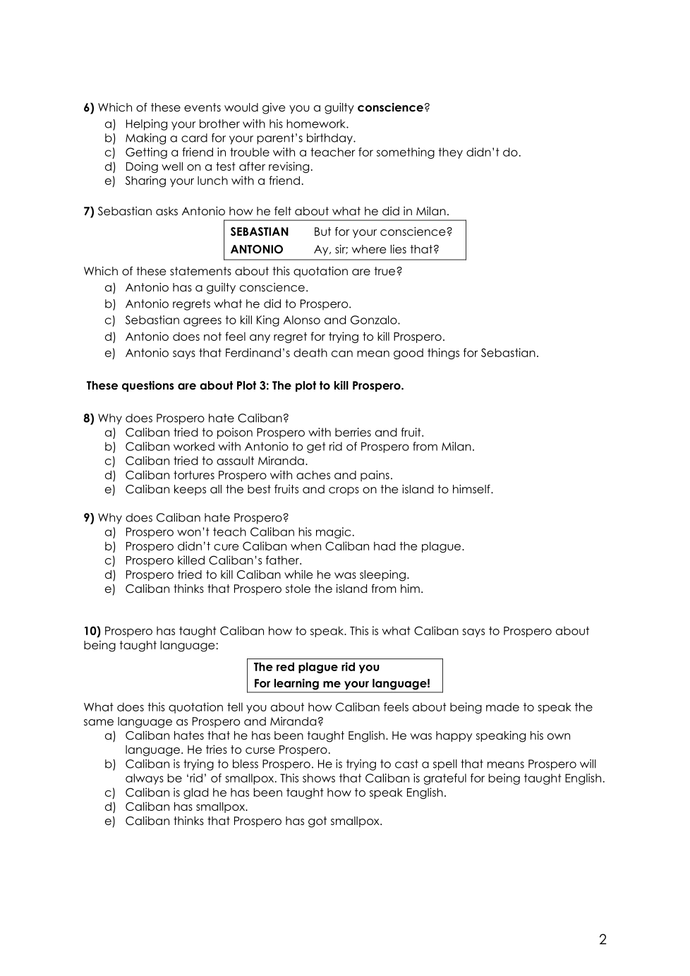 Y8 - The Tempest - Quiz 3F