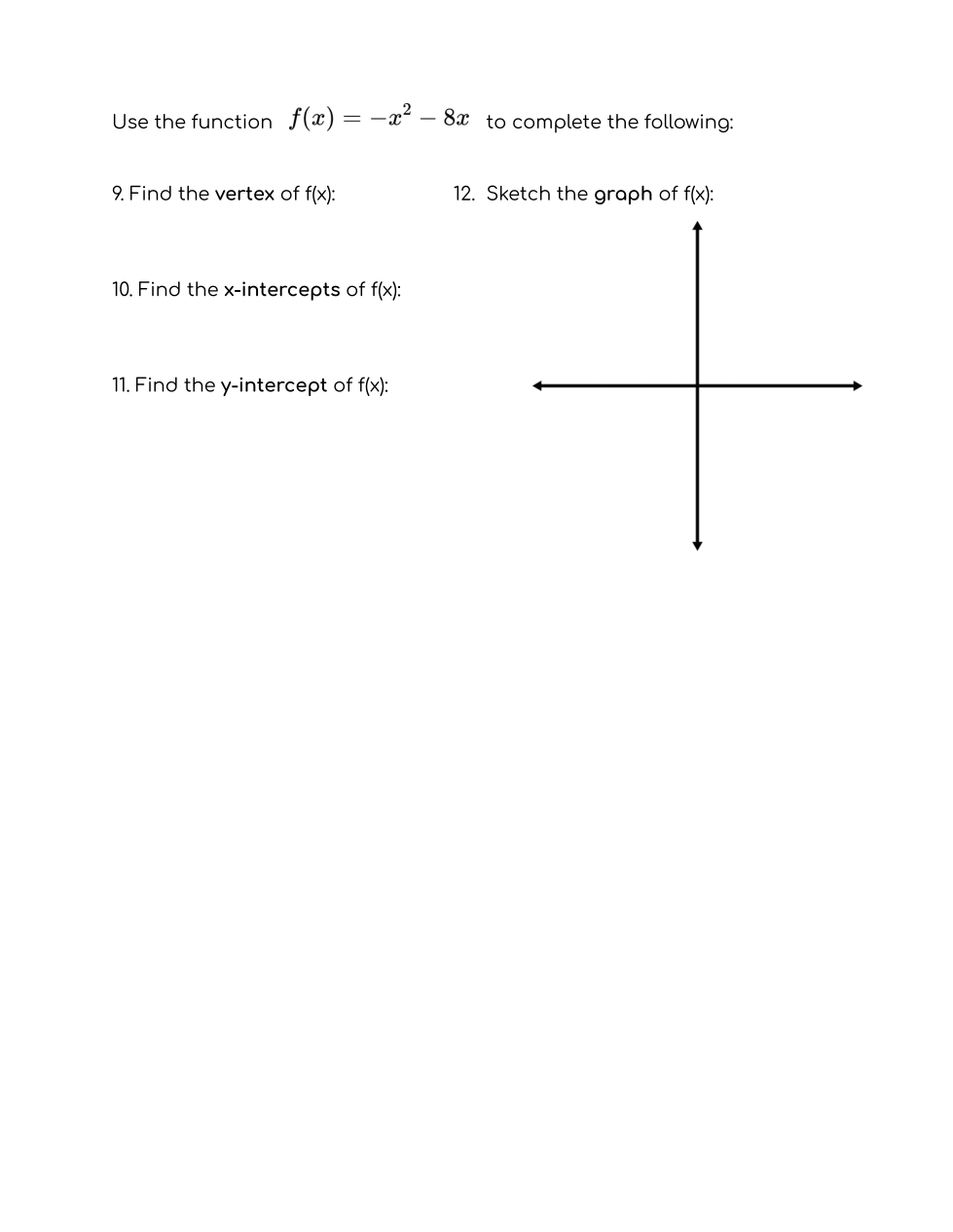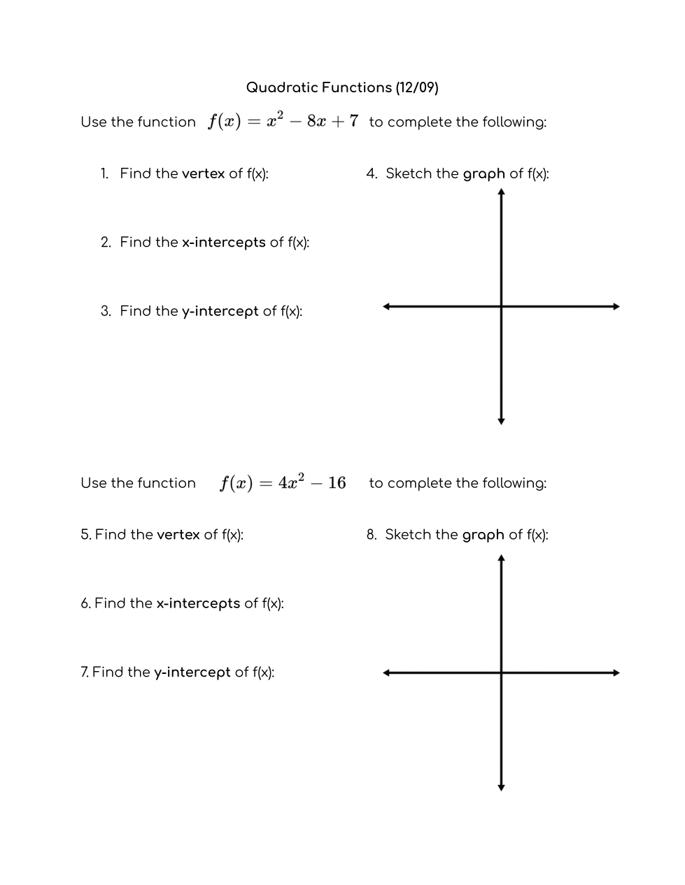 (12/09) Review of Quadratic Functions