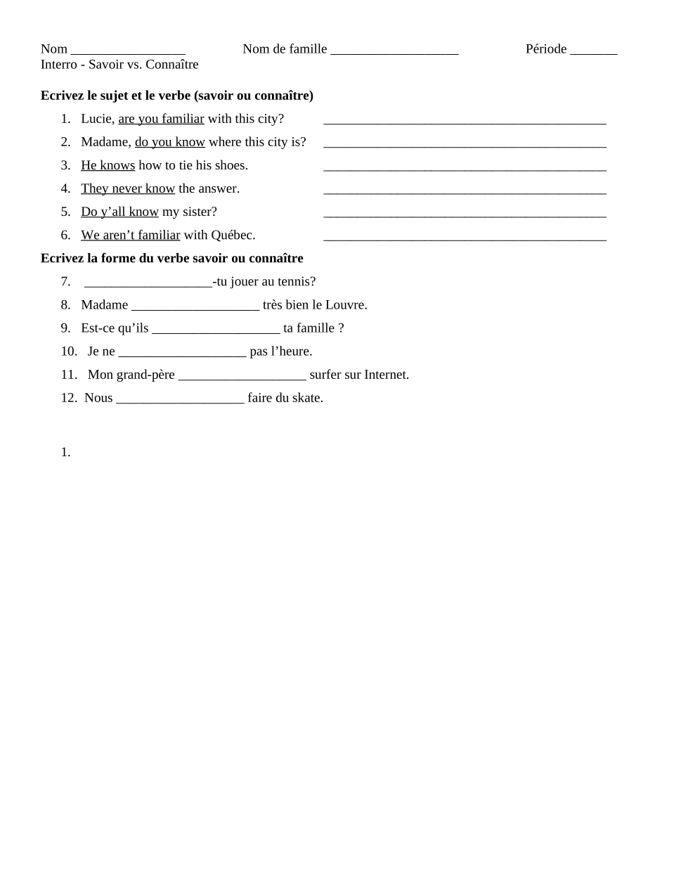 #7 - savoir or connaître? *Be sure to make it match the subject