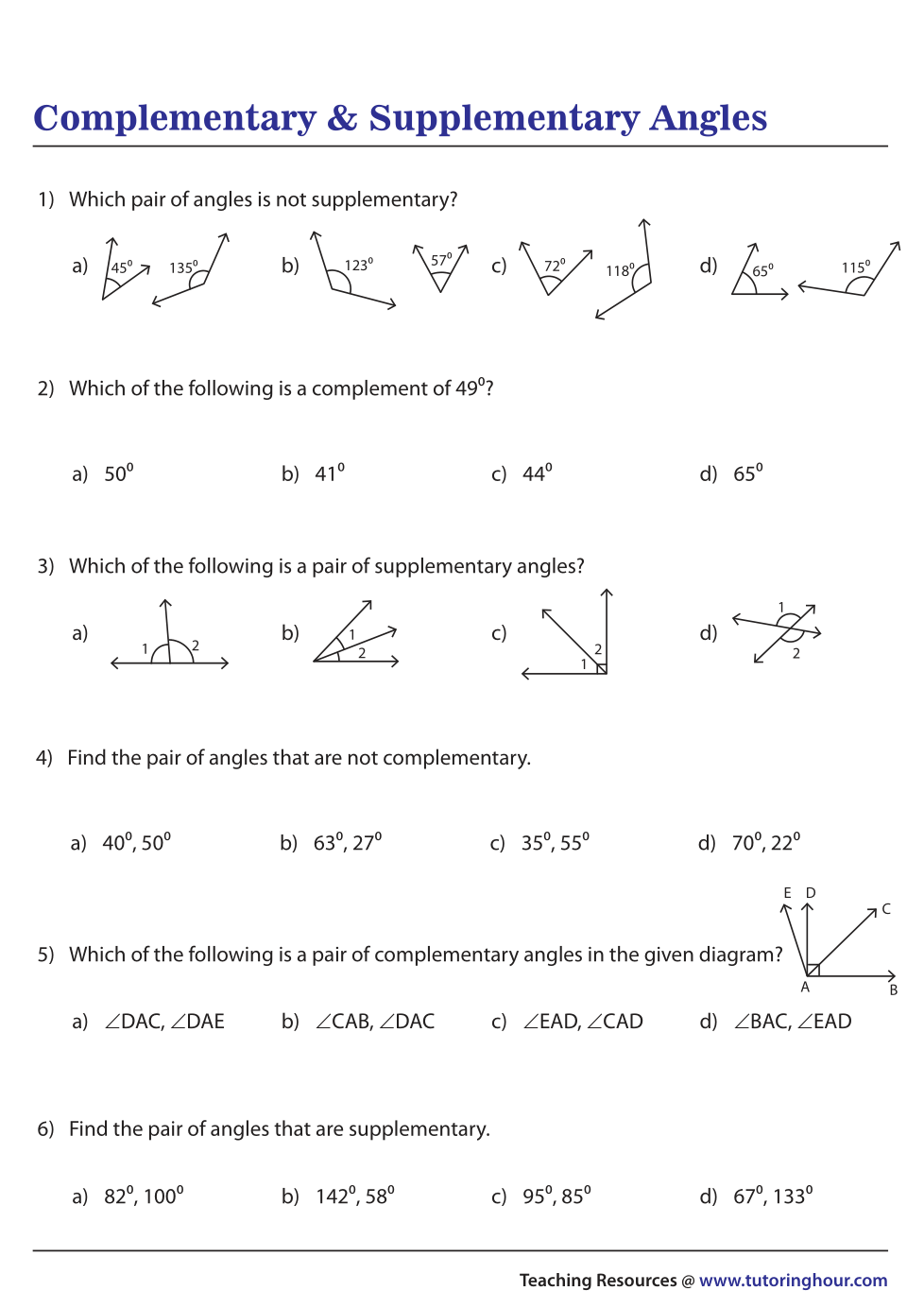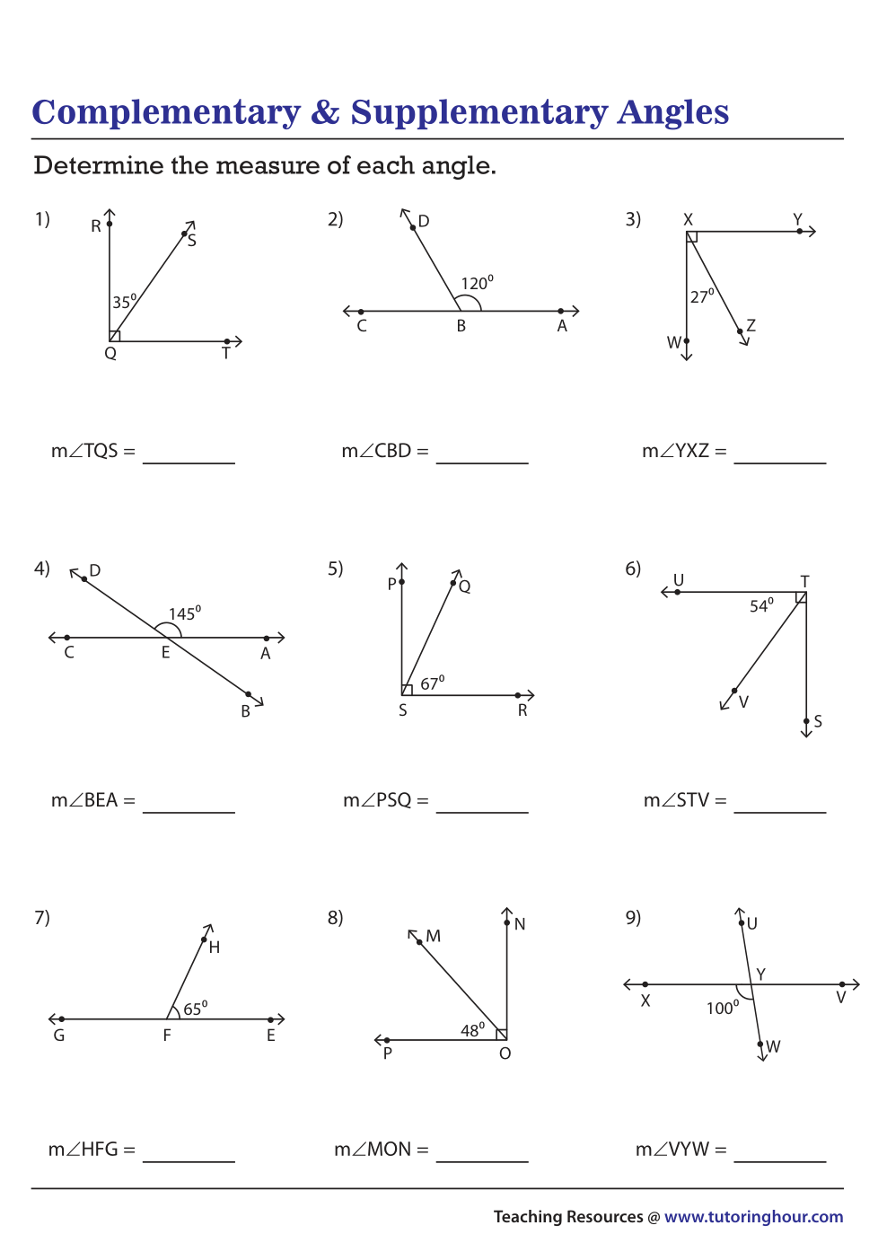 For Questions 7-15 only enter the number. Do not enter letters or the degrees symbol.