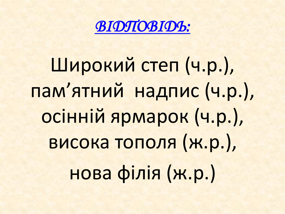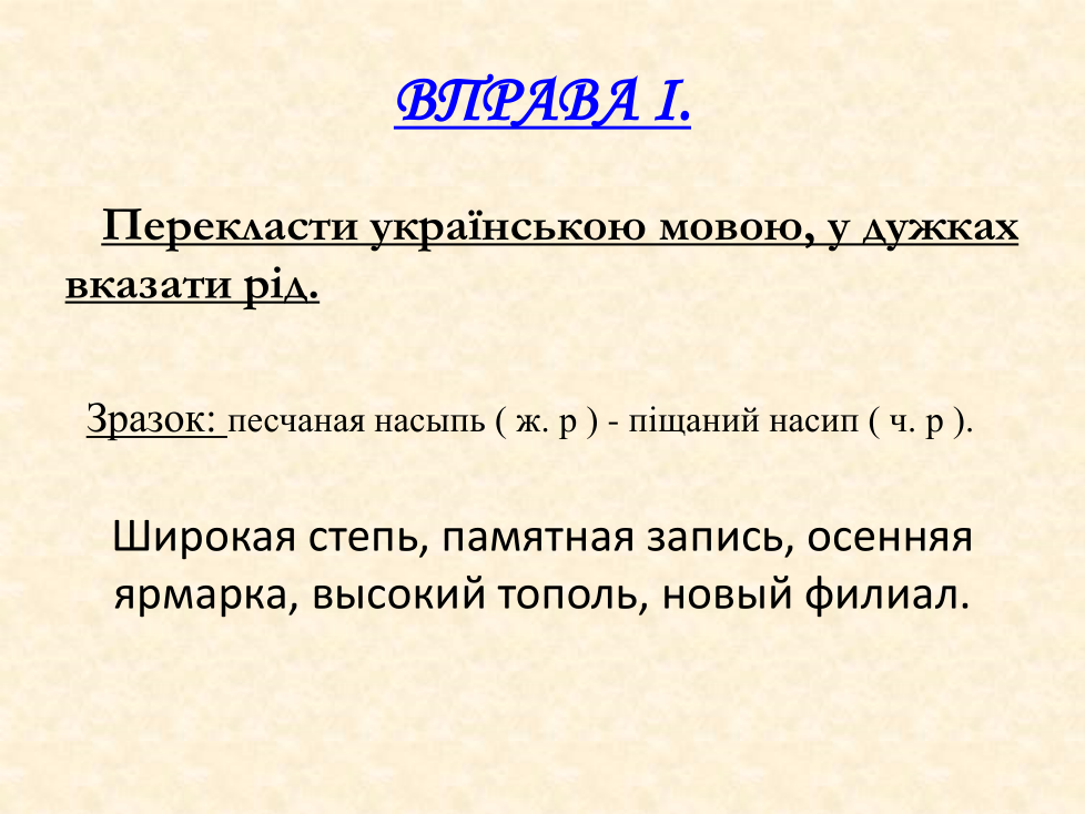 Туапсе — місто (середній рід); «Юманіте» — газета (жіночий рід); Міссурі — річка (жіночий рід); Кюсю — острів (чоловічий рід).