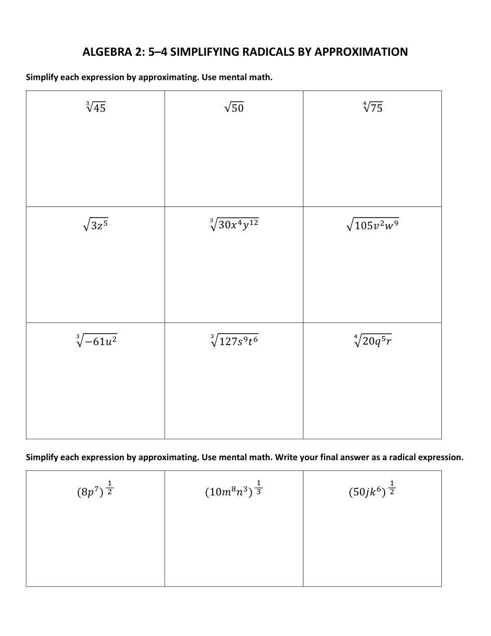by approximating. Use mental math. Write your final answer as a radical expression.