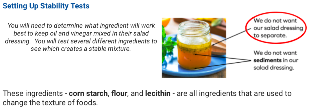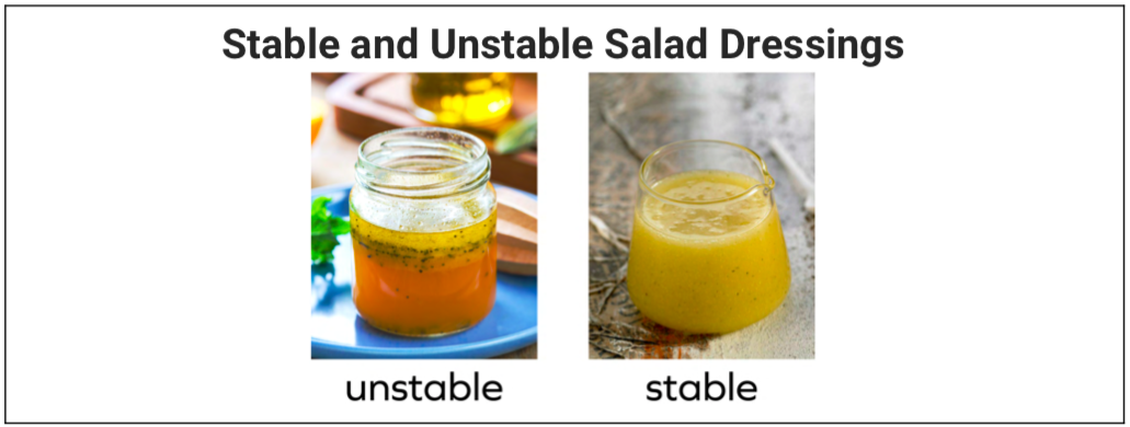 Based on the picture above, when a salad dressing stays mixed, we refer to it as a ___________ mixture.