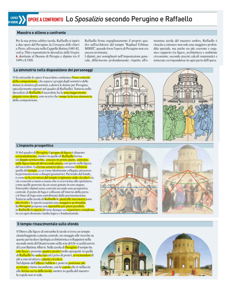 Confronto: associa le caratteristiche elencate all'opera di Perugino o di Raffaello, trascinandole negli spazi sotto il nome di ciascun artista