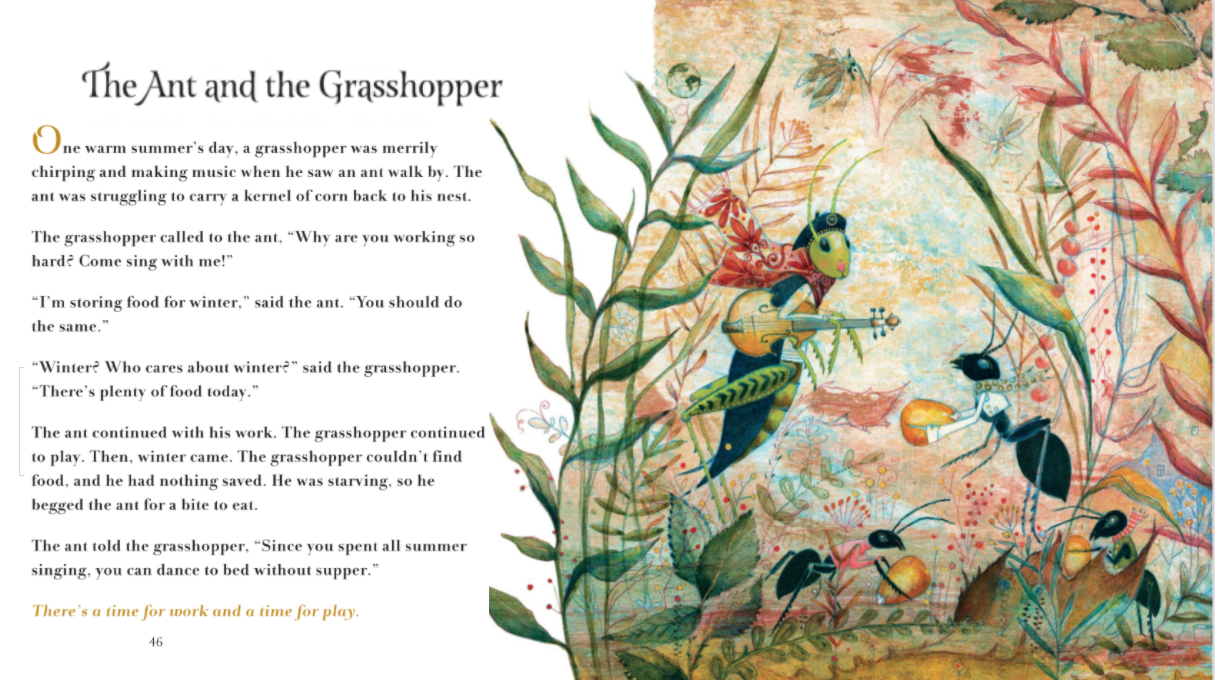 What is the grasshopper’s perspective of the ant storing food for the winter?