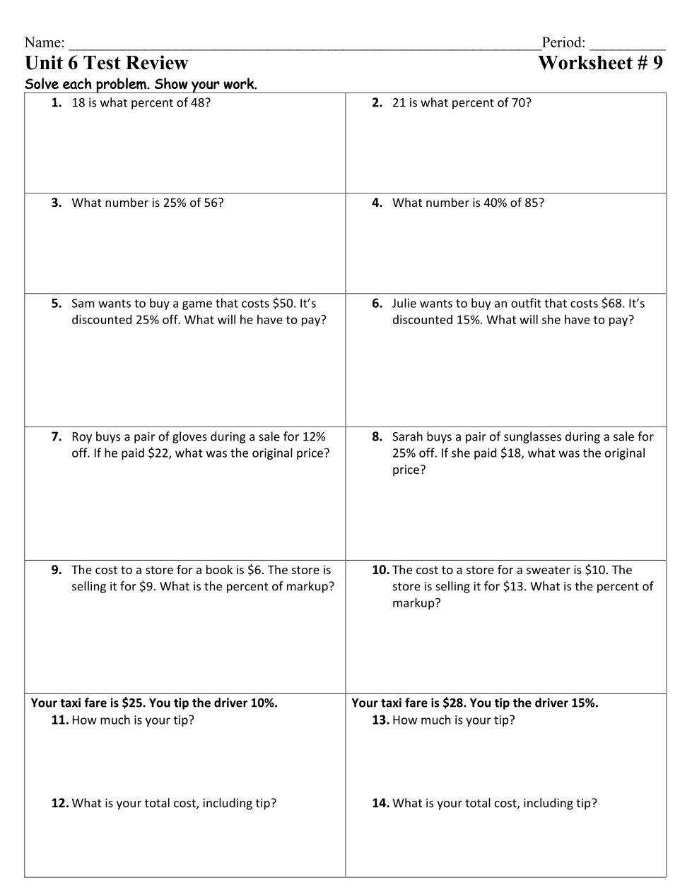 712LRIS WS#9 (Yellow) Unit 6 Test Review
