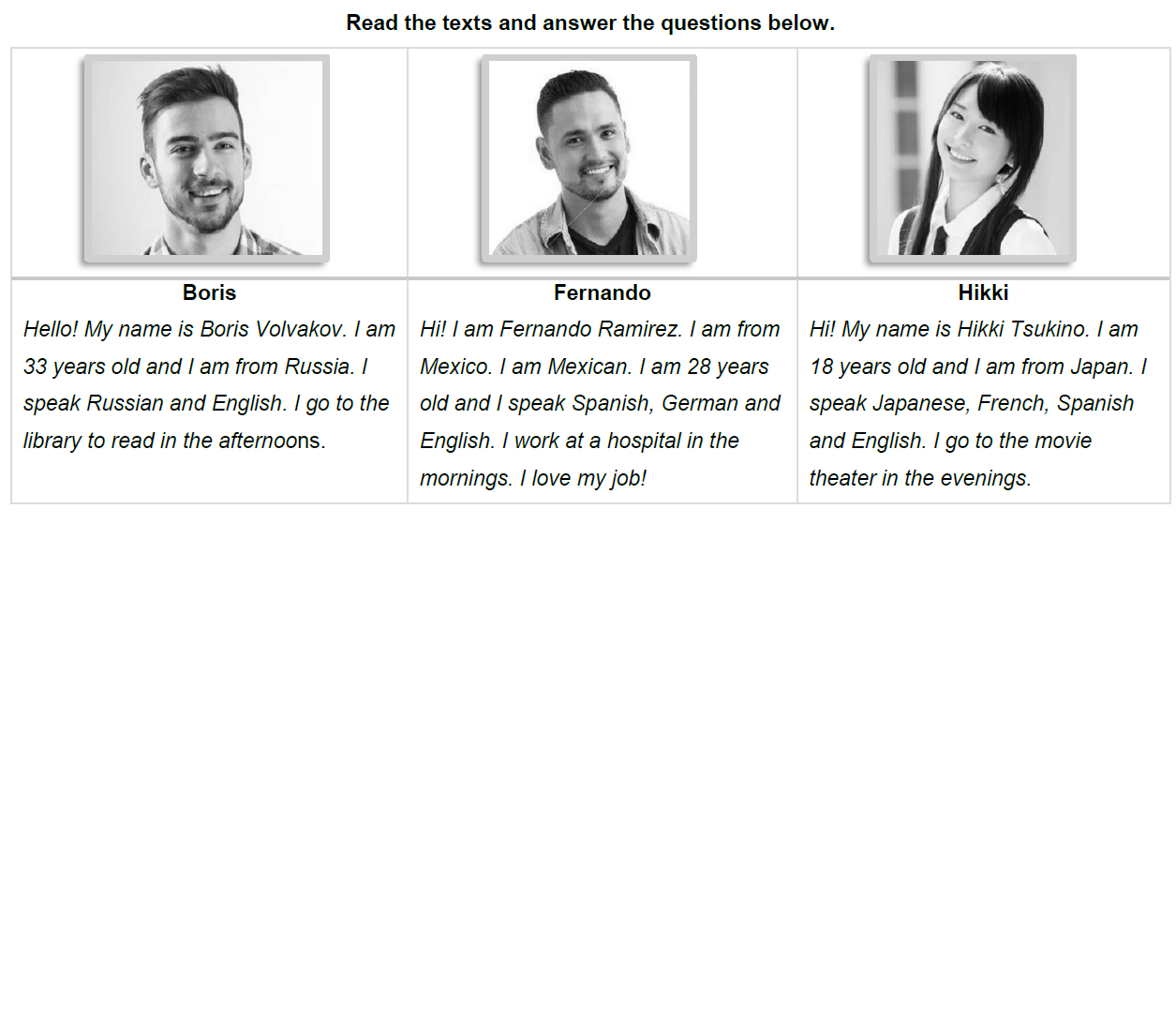 Boris, Fernando and Hikki speak English.