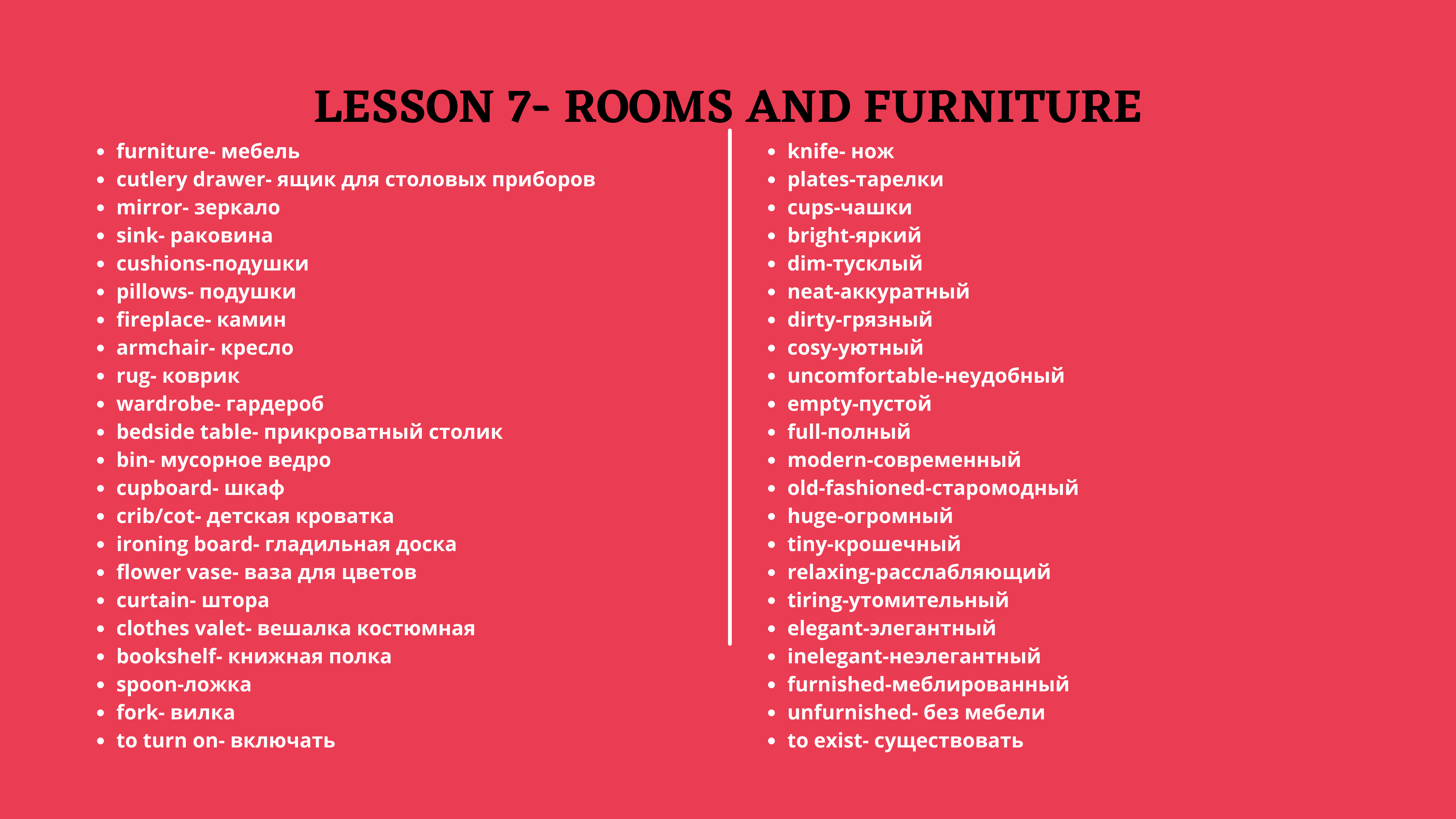 SELF STUDY 7 - ROOMS AND FURNITURE