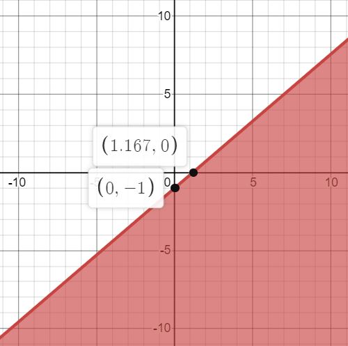Write the inequality that represents the line to the left.Use the points (0, -1) and (7, 5)