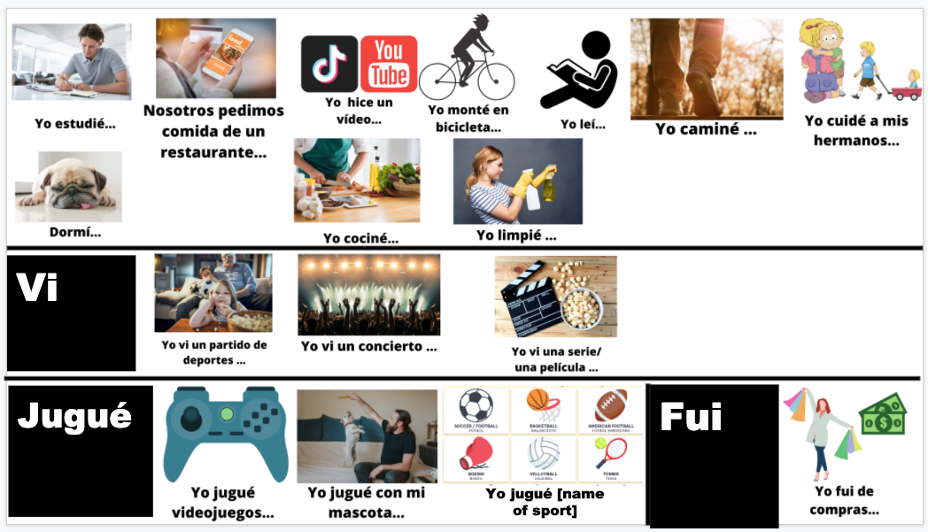 2. ¿Qué hiciste? What did you do? USE THE IMAGE BELOW 👇🏽 TO HELP YOU ANSWER THE QUESTION IN SPANISH.