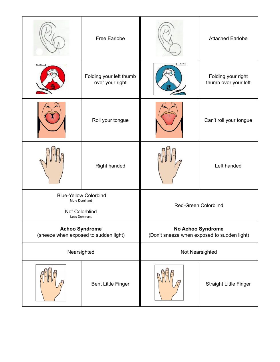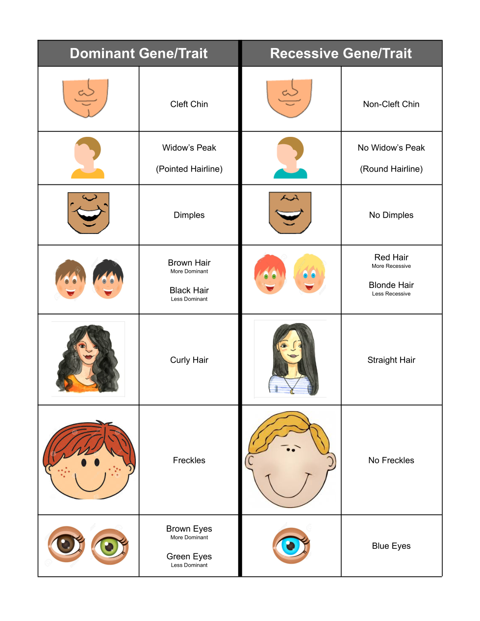 _________________ One Dominant and One Recessive Gene (The dominant gene will be visible and the recessive gene will be hidden)
