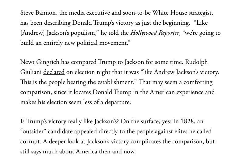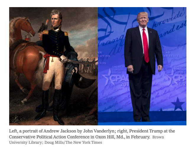 According to the second paragraph in this section, what do President Jackson and Trump have in common?