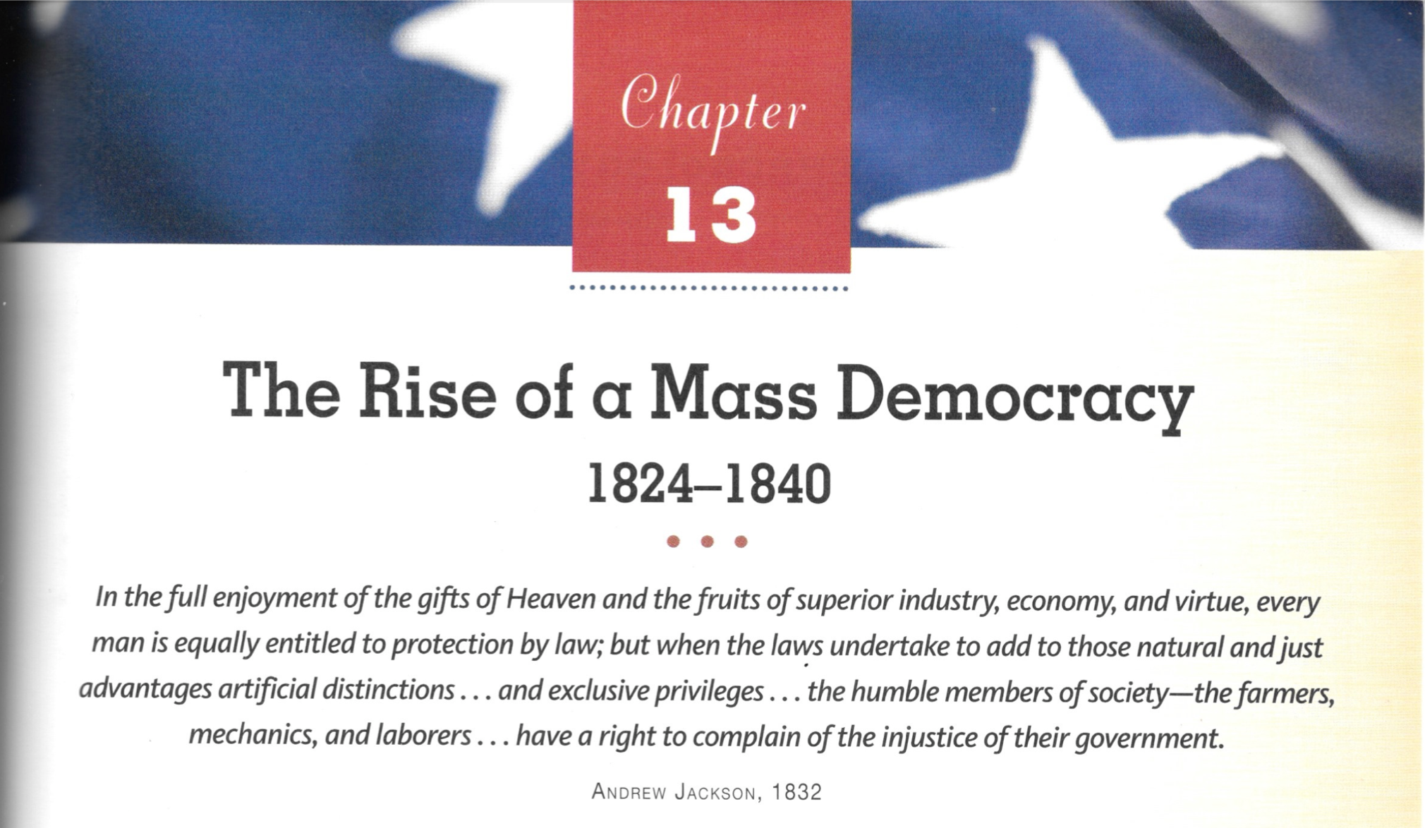 Abridged Chapter 13: Andrew Jackson and the Rise of Mass Democracy (1824-1840)