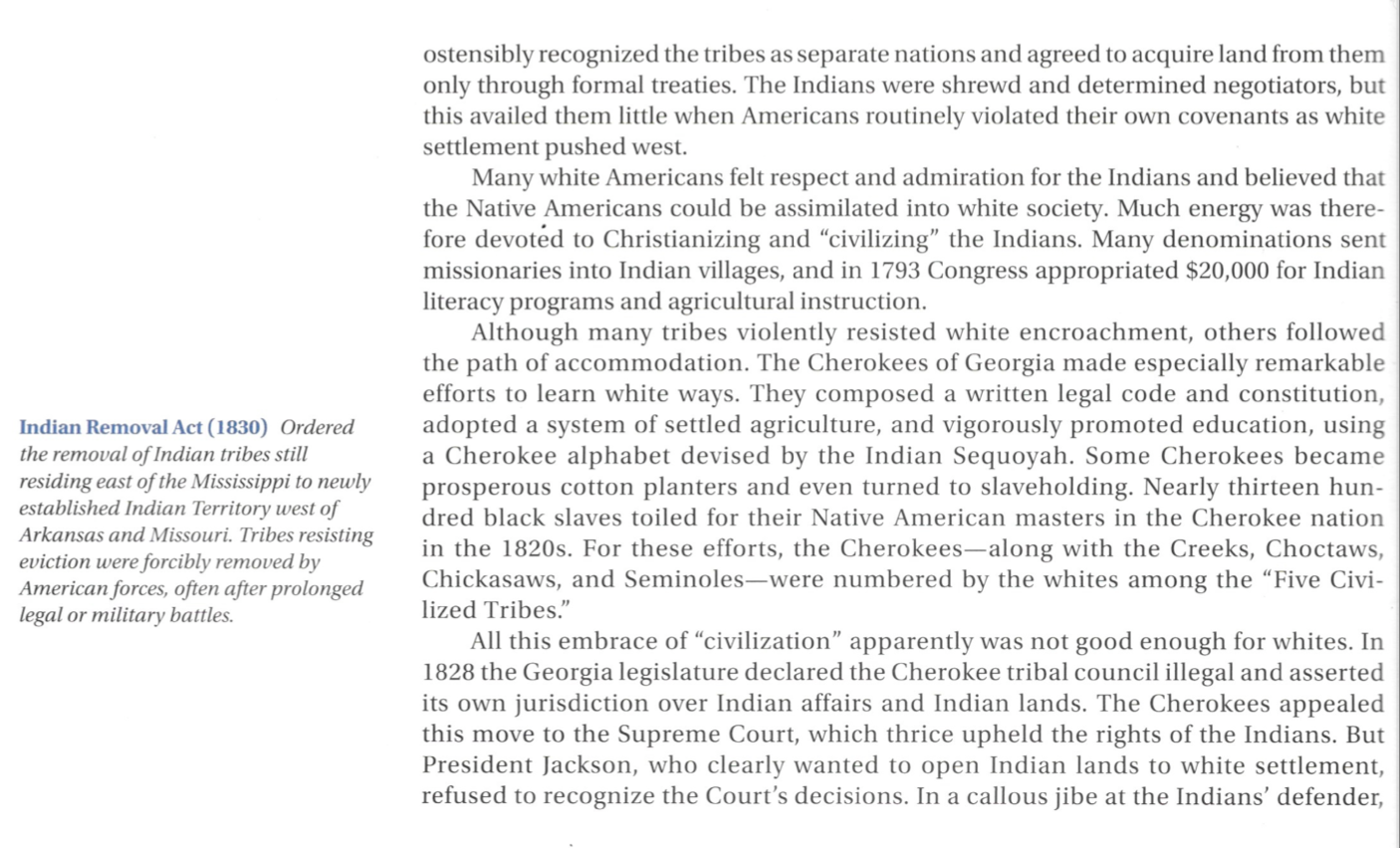In an effort to accommodate their culture to white American society, the Cherokees took all of