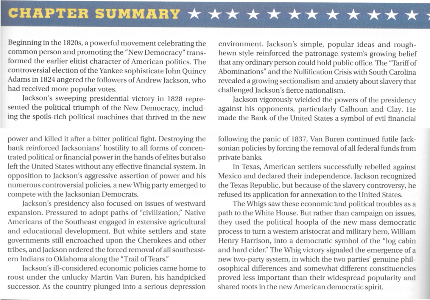 Directions: Please read the following excerpts from your textbook and Steve Inskeep's articles, "Donald Trump and the Legacy of Andrew Jackson" in The Atlantic.
