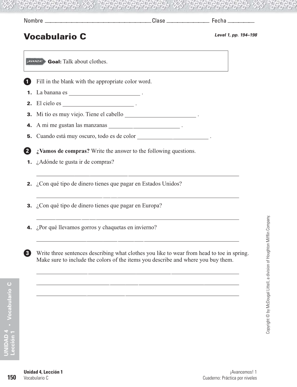 Use your vocab list as needed to complete this. You can keep trying for a perfect score in the time allowed. Remember that adjectives have to agree with the noun in gender and number.