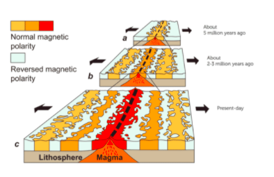 In your own words, explain how magnetism can tell us the relative ages of rocks.