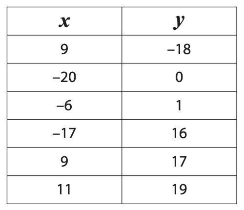(–7, 7), (–8, 3), (–7, 7), (–20, 8), (5, 9), (3, 1), (2, 6)