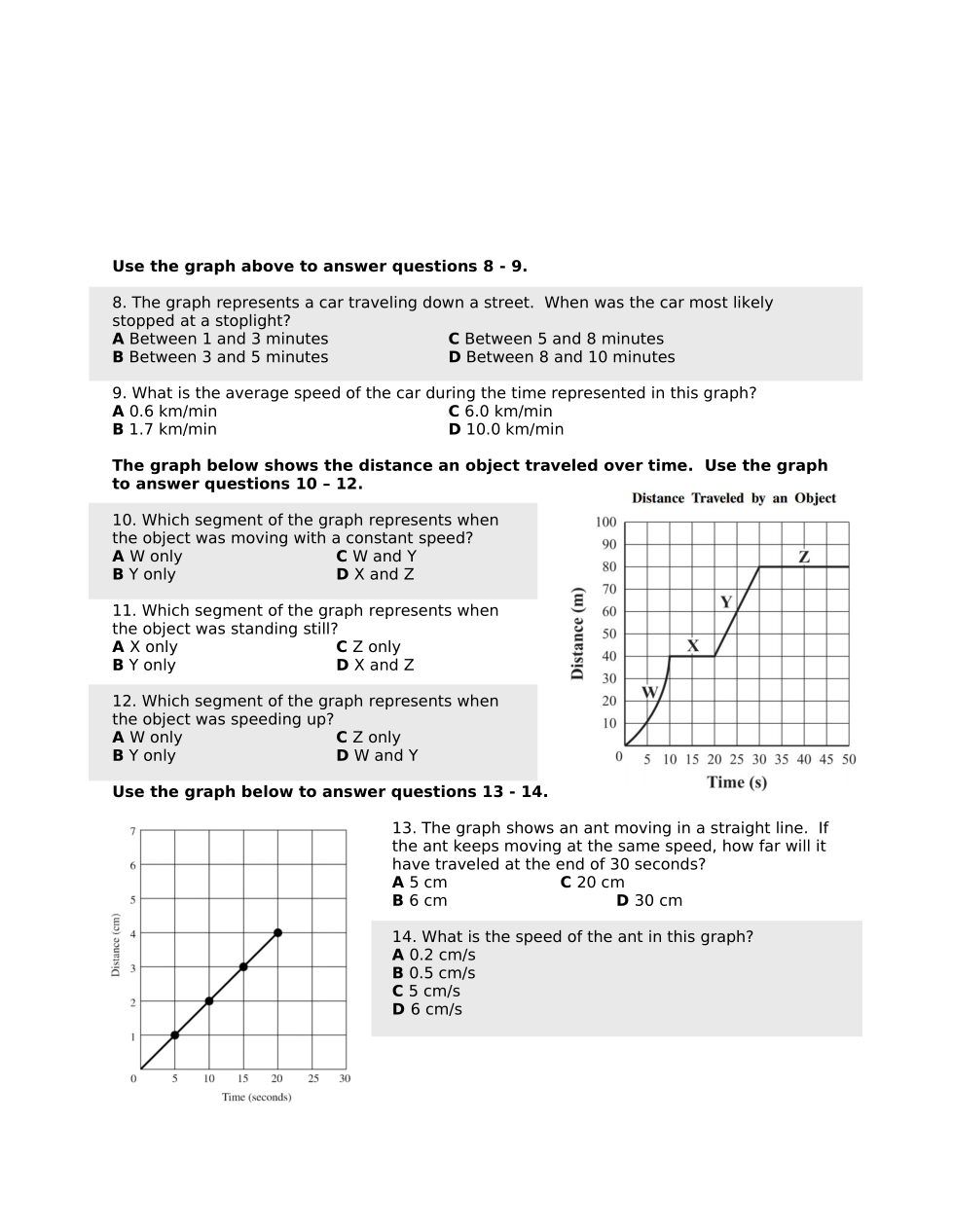 The graph shows an ant moving in a straight line. If the ant keeps moving at the same speed, how far will it have traveled at the end of 30 seconds?