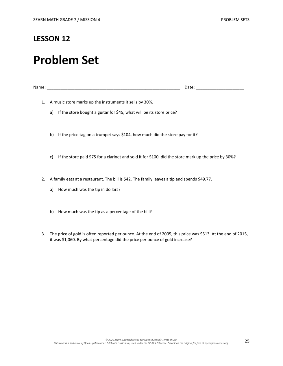 1c. If the store paid $75 for a clarinet and sold it for $100, did the store mark up the price by 30%?