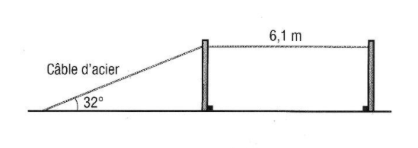 Le point d’attache du câble sur chacun des poteaux se trouve à 3 m du sol.