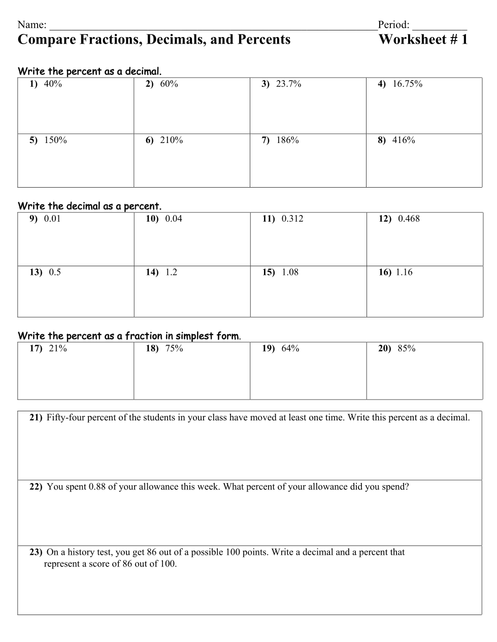 712LRIS WS#1M (Pink) Compare Frations, Decimals, Percents