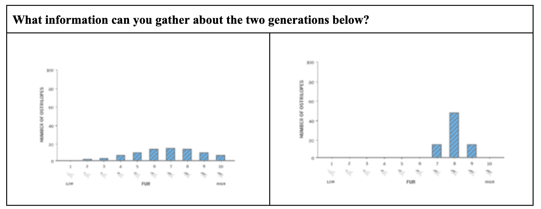 What environmental conditions would make it helpful to have more fur as seen in Generation 2? Explain.CFS:- accurately uses visual data to draw conclusions on population variations