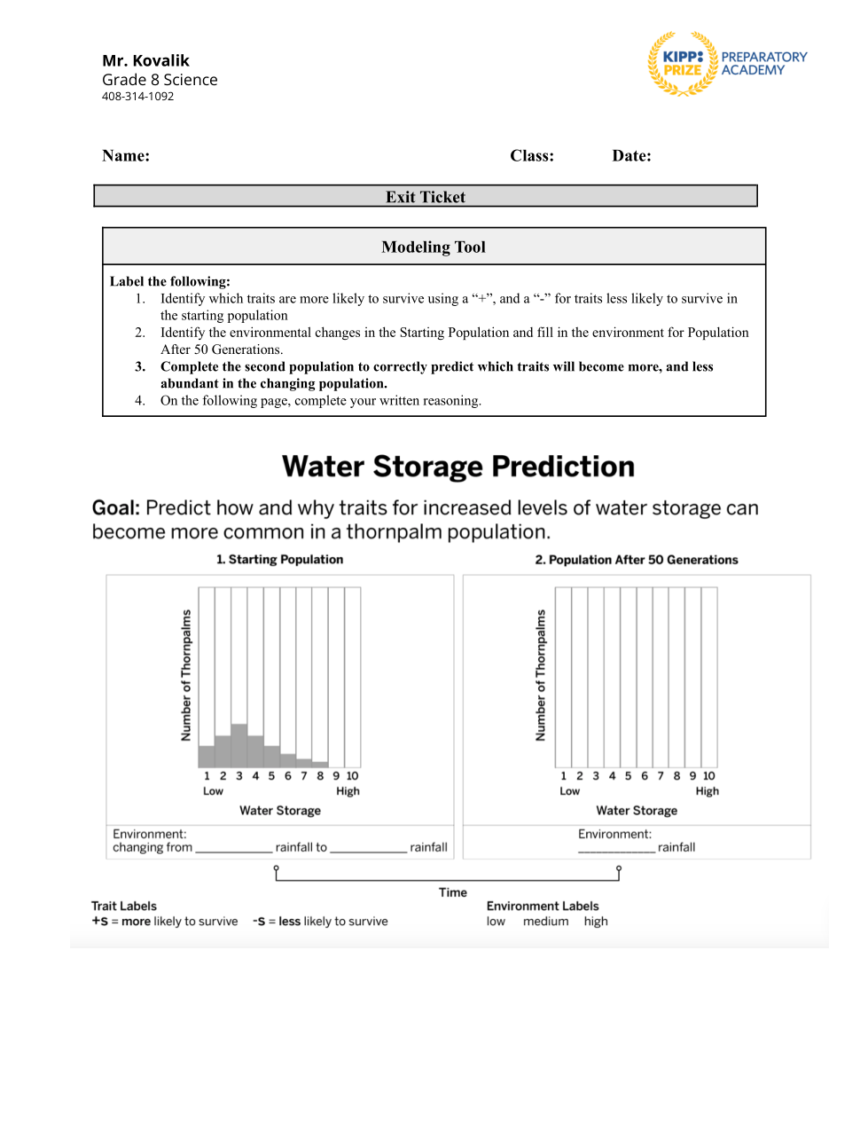 - Identify the environmental changes in the Starting Population and fill in the environment for Population After 50 Generations.