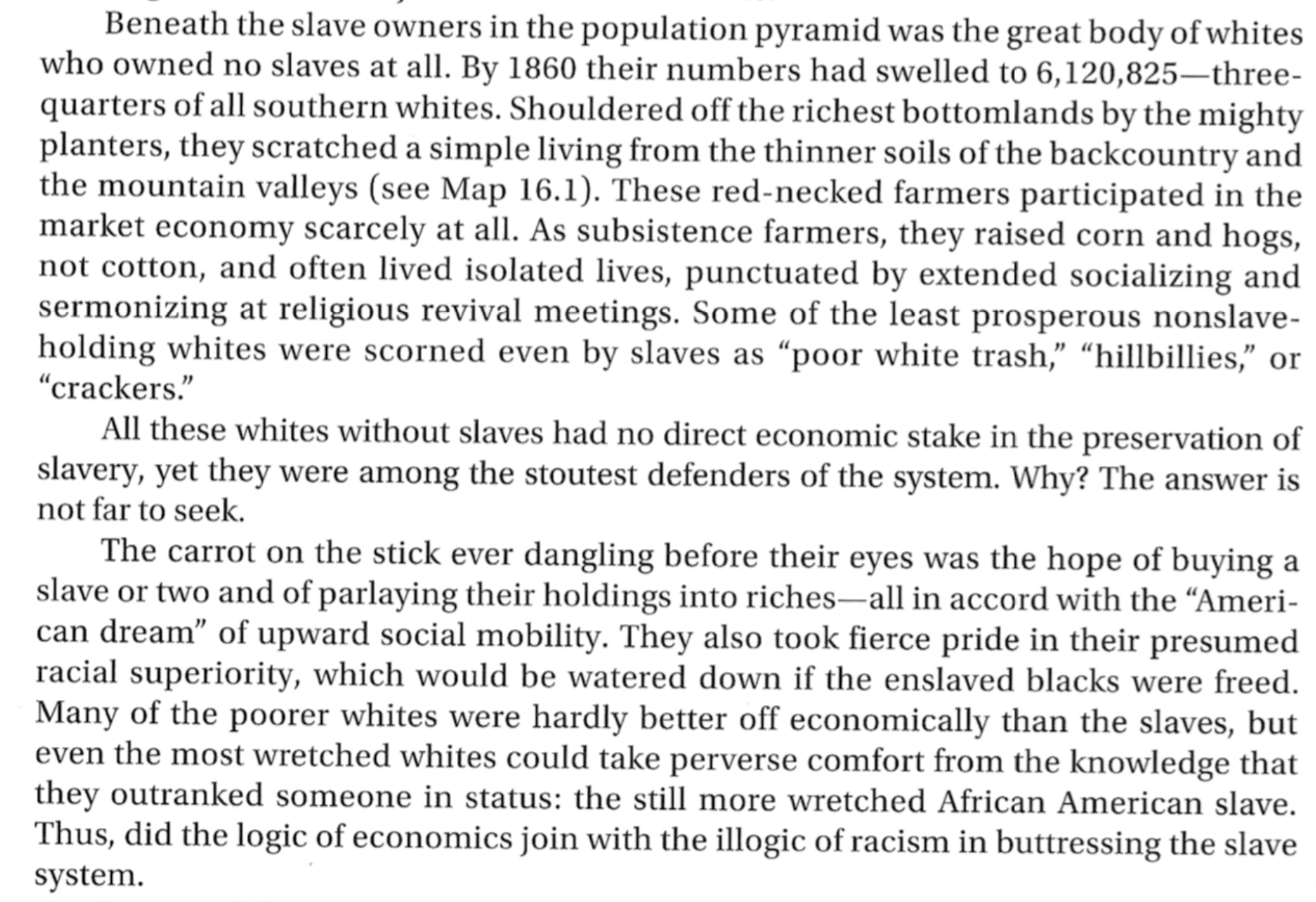 In your own words, why were the stongest supporters of slavery poor white people who didn't actually own slaves?