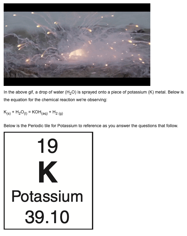 Potassium reacts so strongly when placed in water because.... (Select All that Apply)