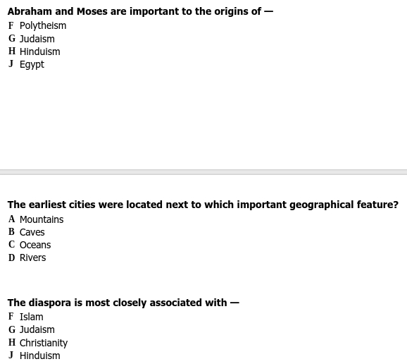 Nirvana | arrow_right_alt | Religion with no specific founder and belief in one God in MANY forms {i.e. brahma, Vishnu, & Shiva} |