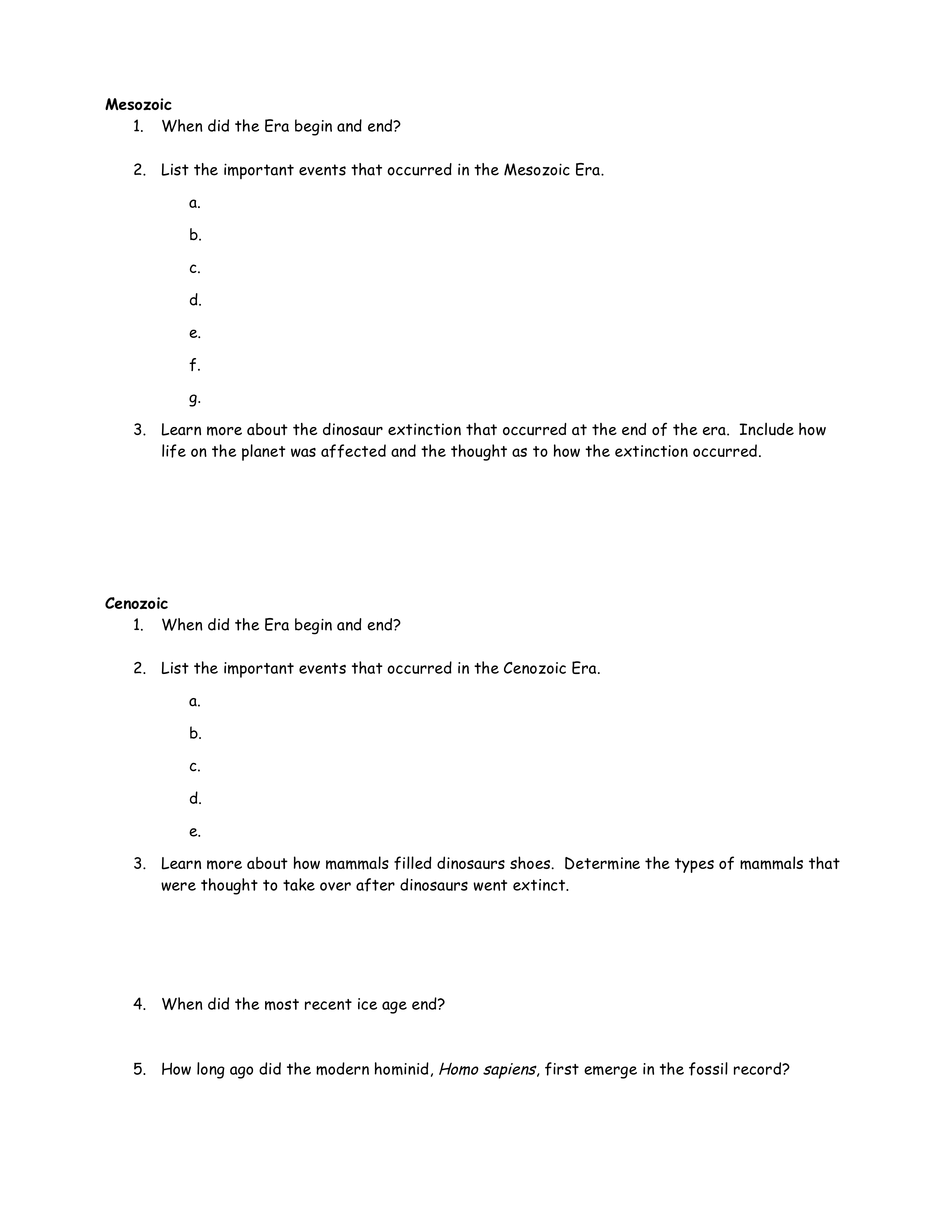 Instead of clicking on "Read More", just choose an event to describe in the Paleozoic era.