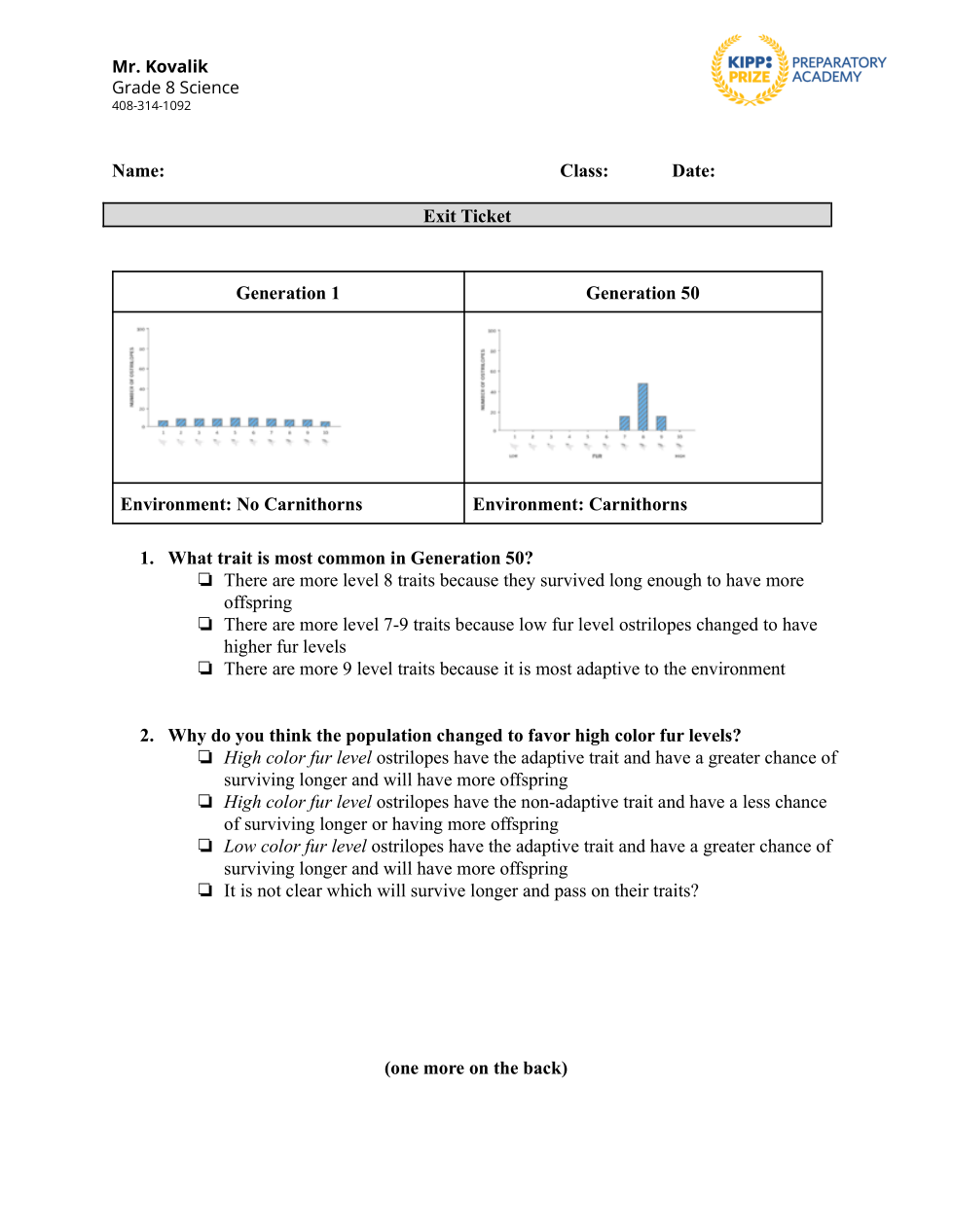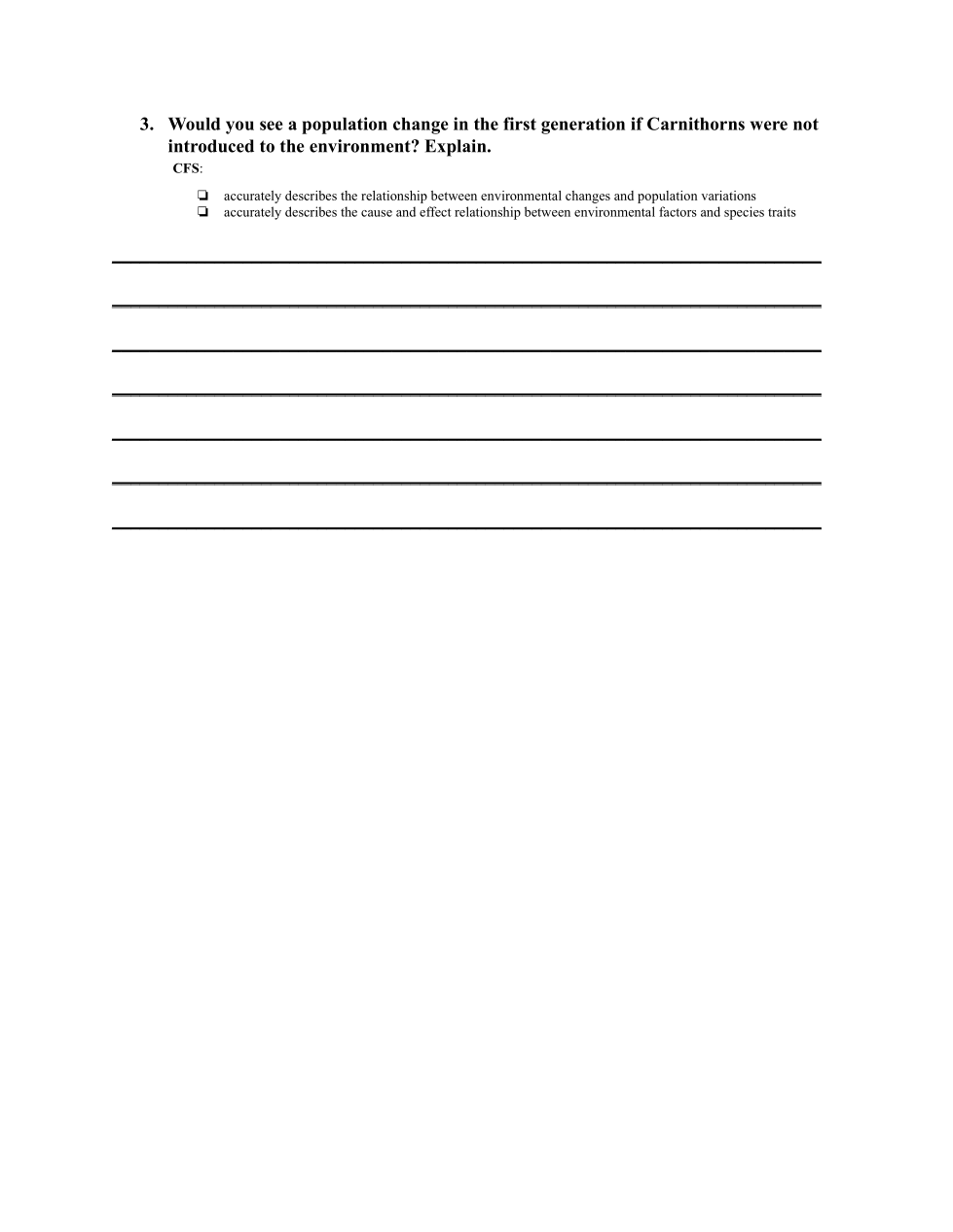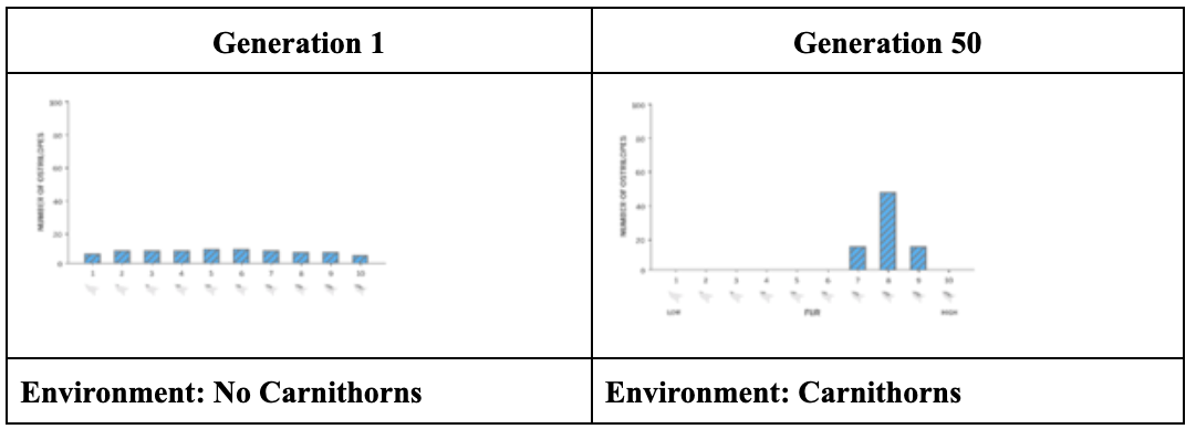 Would you see a population change in the first generation if Carnithorns were not introduced to the environment? Explain.