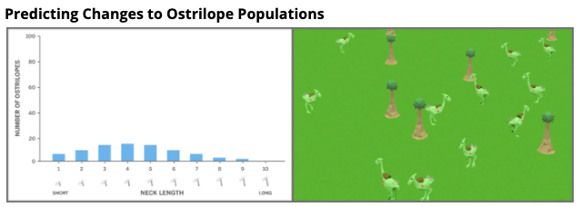 Goal: In fewer than 30 generations, change the starting ostrilope population into a population of at least 70 individuals with low variation in color traits (4 traits or fewer). Do this without adding a predator.