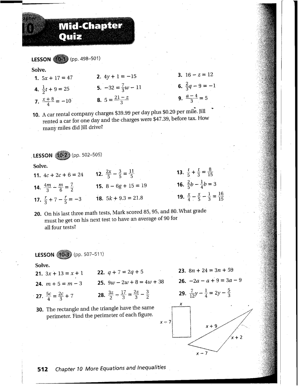 Chapter 10 Mid-Chapter Quiz