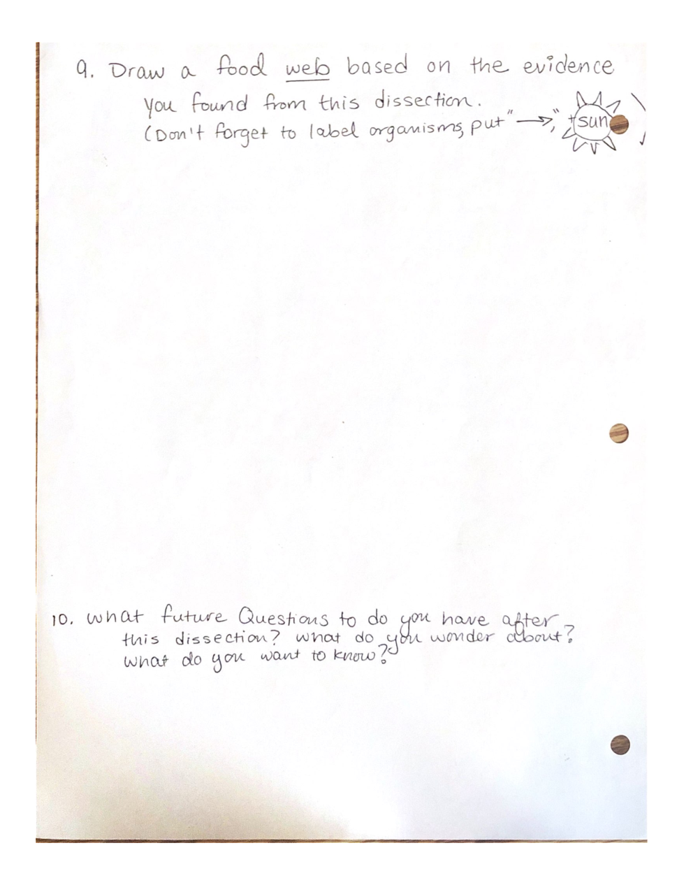 9. Draw a food chain/web based on the evidence you found from THIS DISSECTION.
